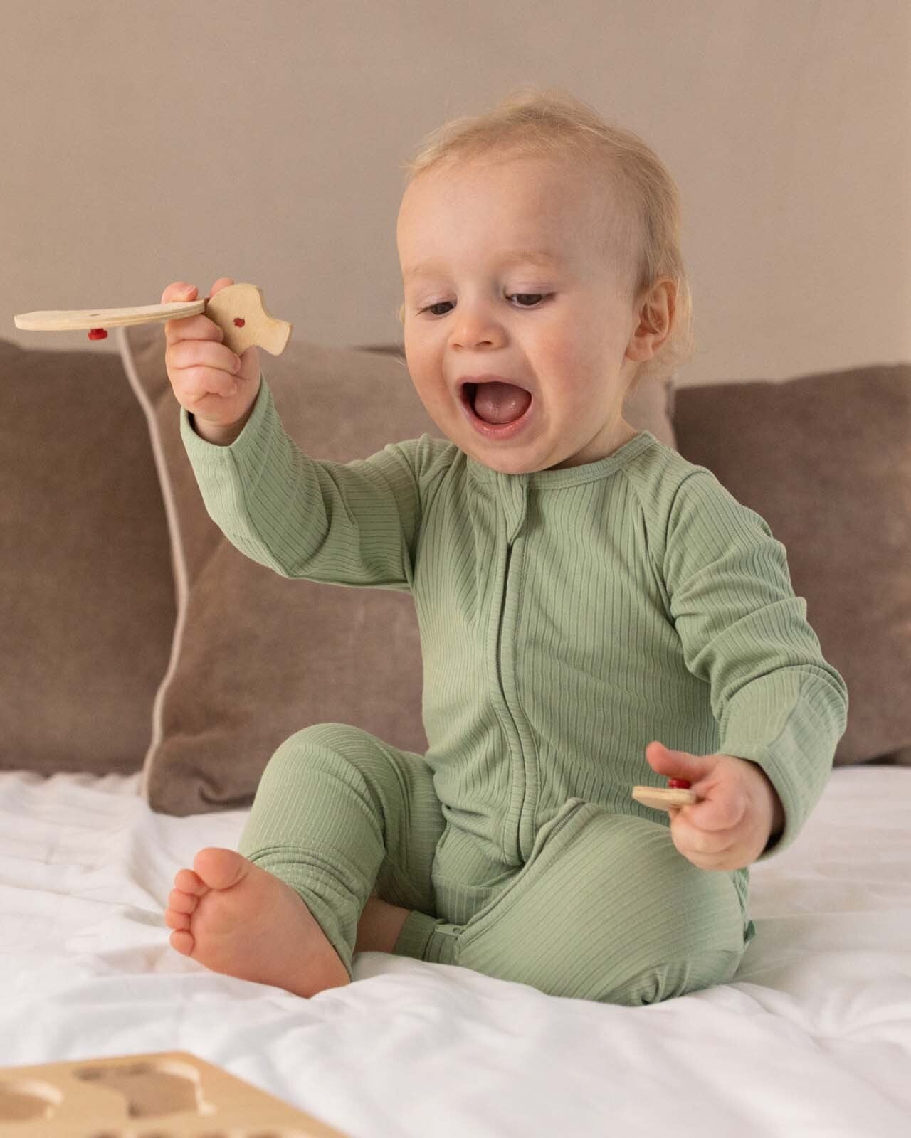 🍃 Made from natural bamboo fibres, our zip babygrow ensures softness and breathability making it perfect for your baby's delicate skin. Bamboo is not only hypoallergenic but also possesses natural thermo-regulating properties, keeping your little one comfortably warm in winter and cool in summer.