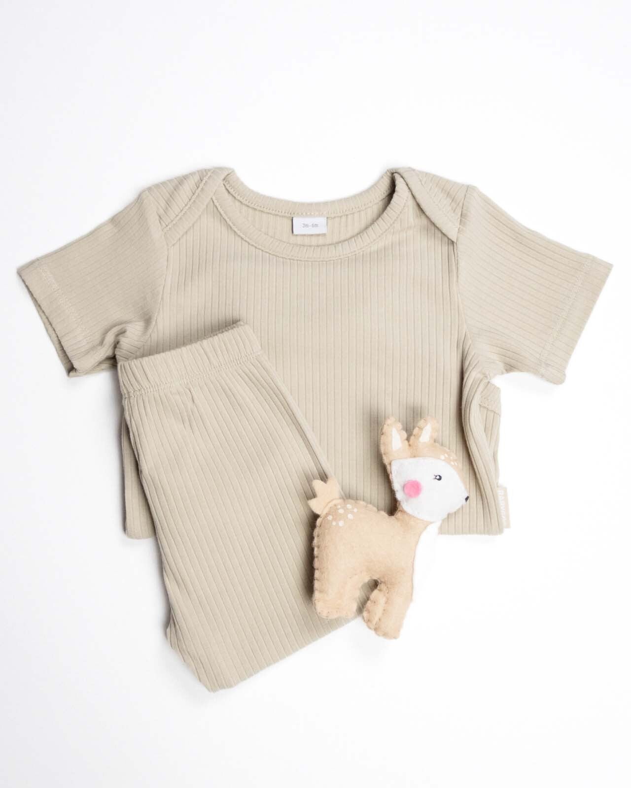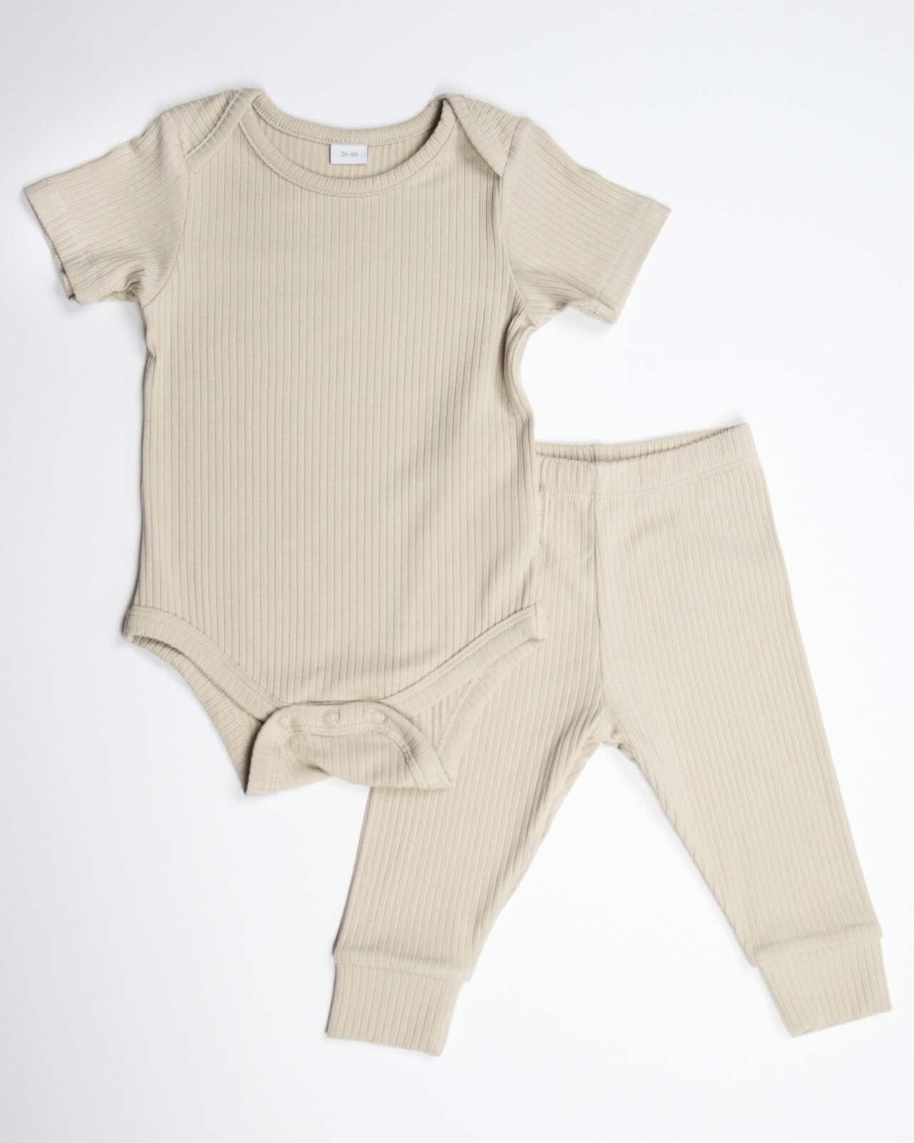 BABYGO® Oatmeal Short Ribbed Bodysuit & Leggings