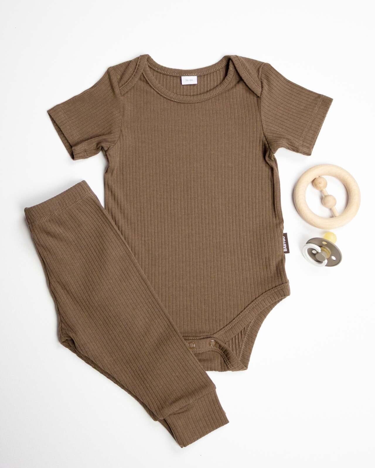 BABYGO® Mocha Short Ribbed Bodysuit & Leggings