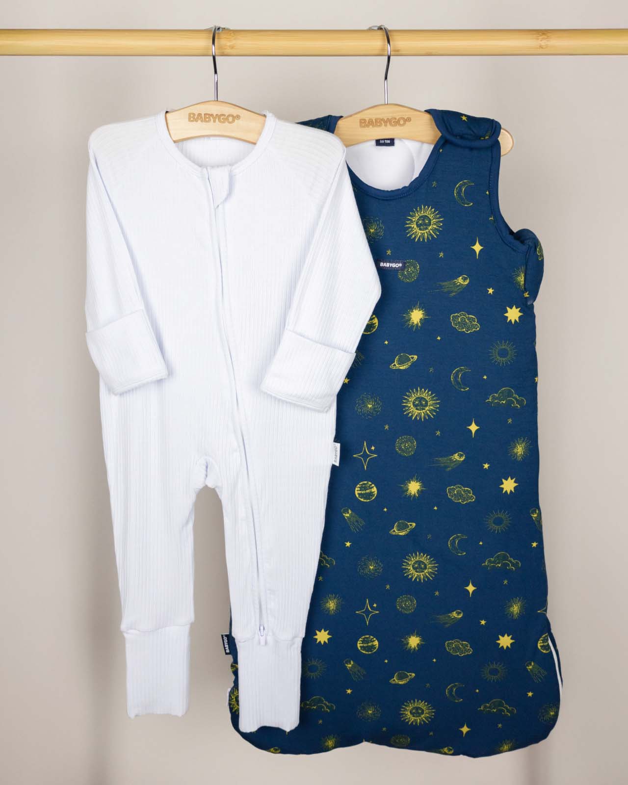 Enjoy calmer bedtimes with our Zip Up Sleepsuit and Baby Sleep Bag Bundle, designed to keep your little one comfortable while making night-time changes simple and stress-free.