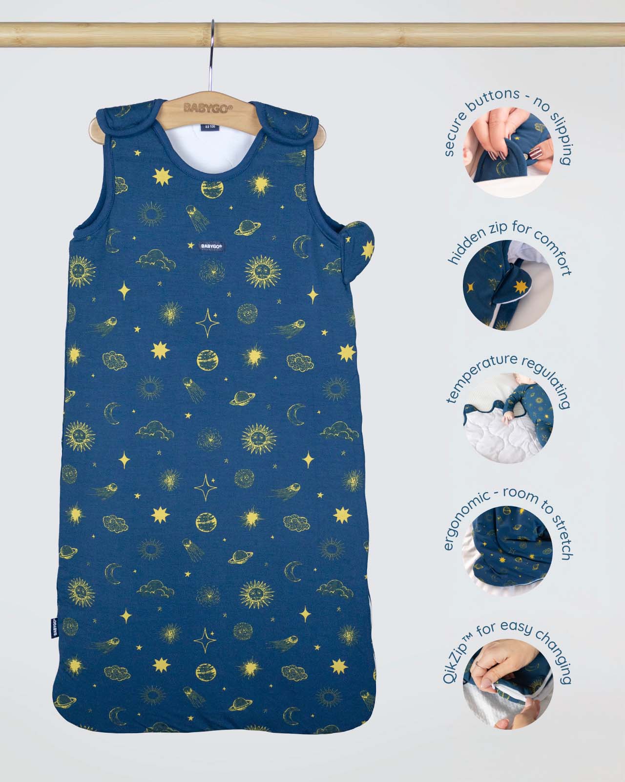 Our matching baby sleeping bag completes the bundle, creating a snug and secure sleep space for year-round use.