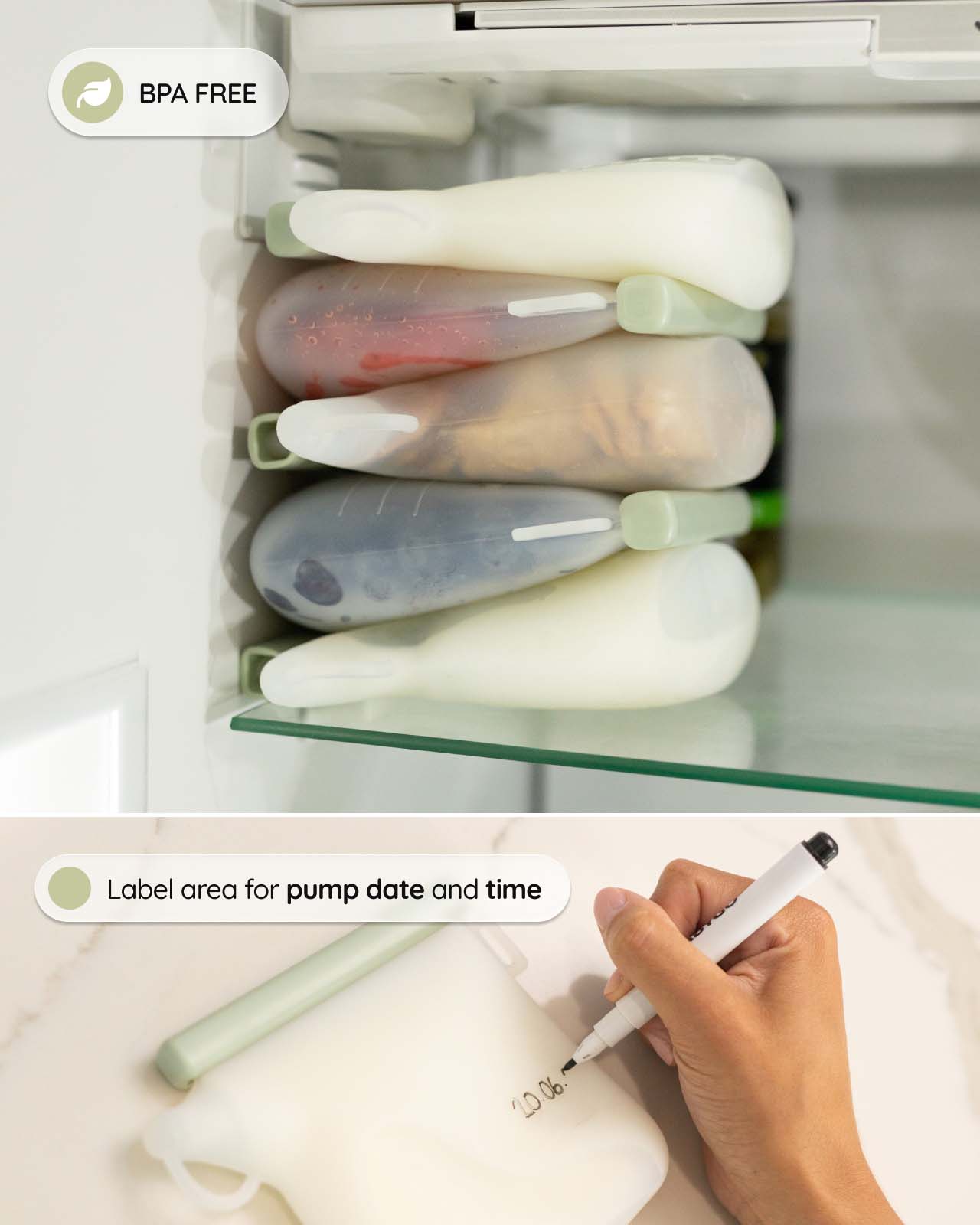 The self-standing base makes filling and storing simple, while the flat-freeze design helps you save valuable freezer space and keeps your milk organised.